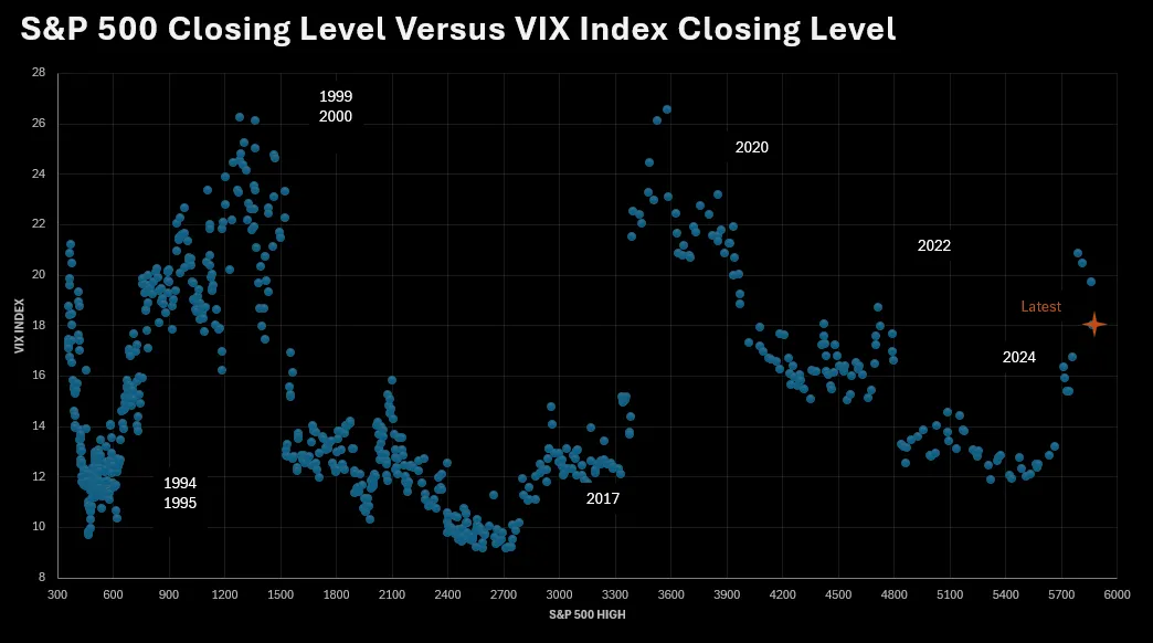 最近波动性有所上升。今年大多数标准普尔500指数的历史高点出现在低VIX指数读数期间,而最近几周设定的高点伴随着更大的价格波动。这并不一定是值得担忧的事情。