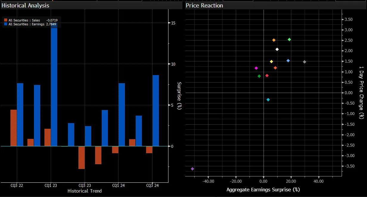 来源:彭博社默克芬克的股票联合负责人马克·德克表示,74%的美国公司超出了预期,而在欧洲大约有一半的公司达到了这一点。盈利的关键转折点——同样,这一点很难确定——是大型科技公司的业绩。