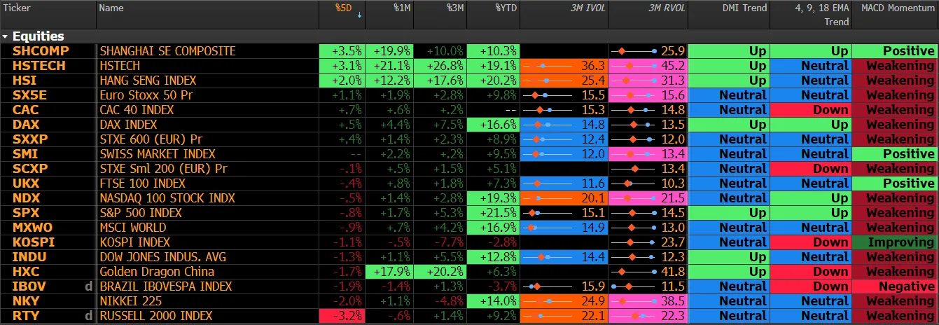 股权基准的动能正在减弱,但并未明显转为负面。目前的整合也没有迹象表明正在演变为更深的修正。