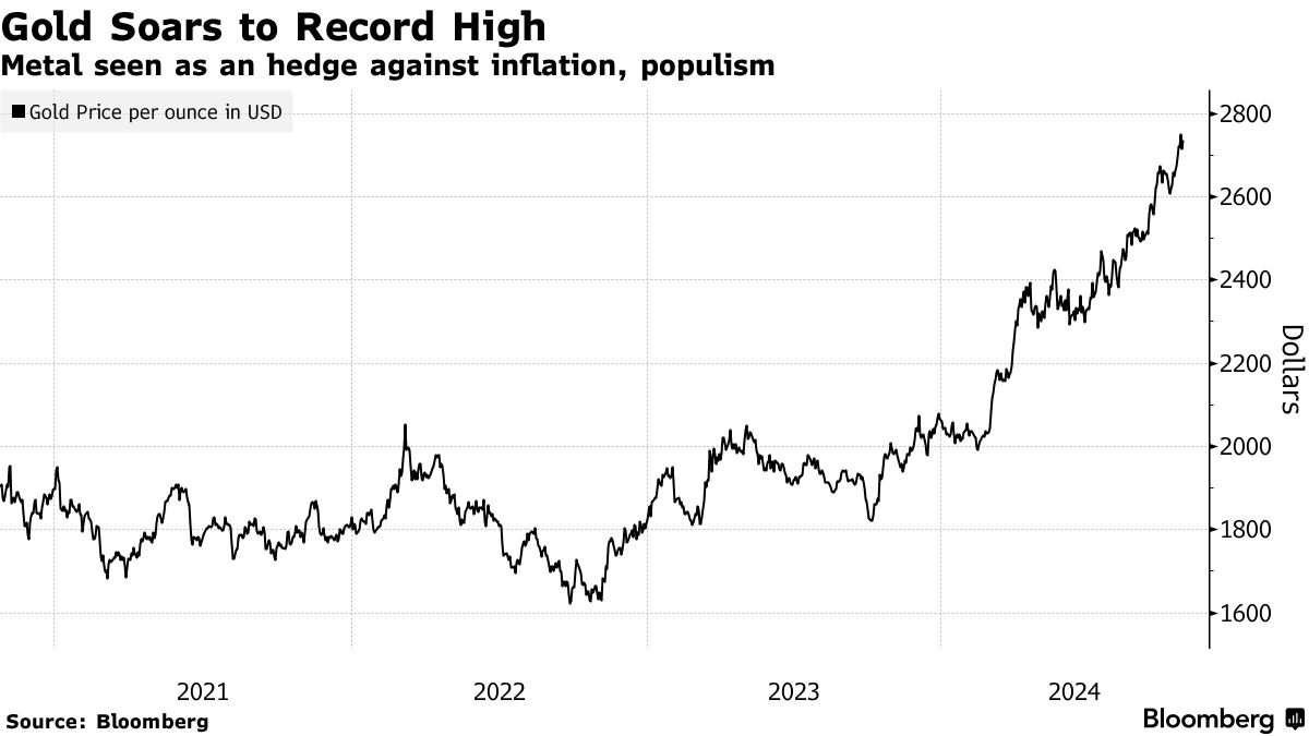 黄金交易是投资者战略的一部分,旨在为唐纳德·特朗普在选举中可能获胜而调整投资组合。由于押注共和党候选人获胜将引发通货膨胀反弹、预算赤字上升以及与中国的潜在贸易战,美元也上涨。