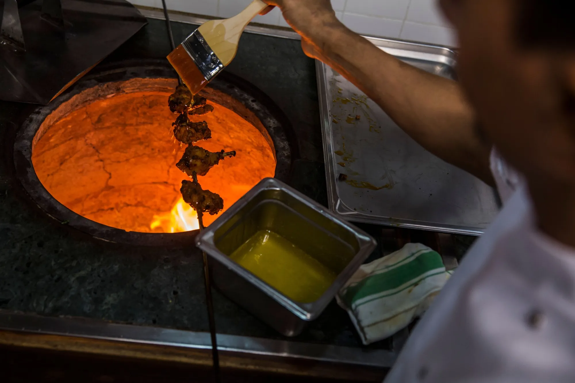 坦杜尔烤箱。摄影师:艾萨克·劳伦斯/法新社/盖蒂图片社然后是masalewali chaanp(市场价格),这道招牌羊排腌制48小时,入口即化,恰到好处的风味和烟熏味来自烤架。我其实不太喜欢羊肉,但我爱这道菜。