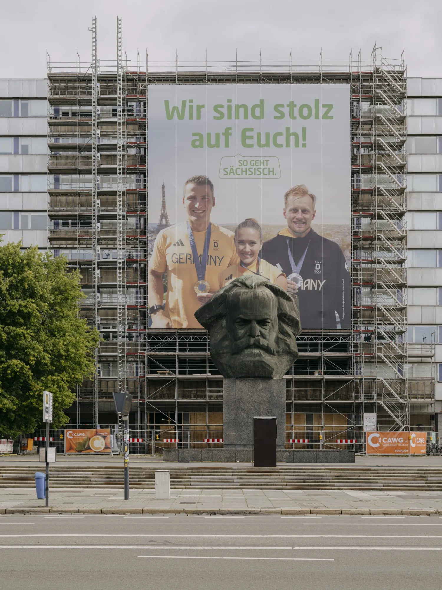 当卡尔-马克斯城在统一后重新成为开姆尼茨时,人们忘记了通知这位名字的来源。在这座位于萨克森州、坐落于 Erzgebirge 边缘的城市中心,矗立着一座宏伟的马克思雕像,其丰盈的头发和浓密的胡须形成了一个光环,环绕着雕刻的面部特征。在它面前是一条宽阔的林荫大道,甚至适合举行军事游行,紧接着是一座现代主义的行政大楼,为苏联时代的氛围增添了色彩。