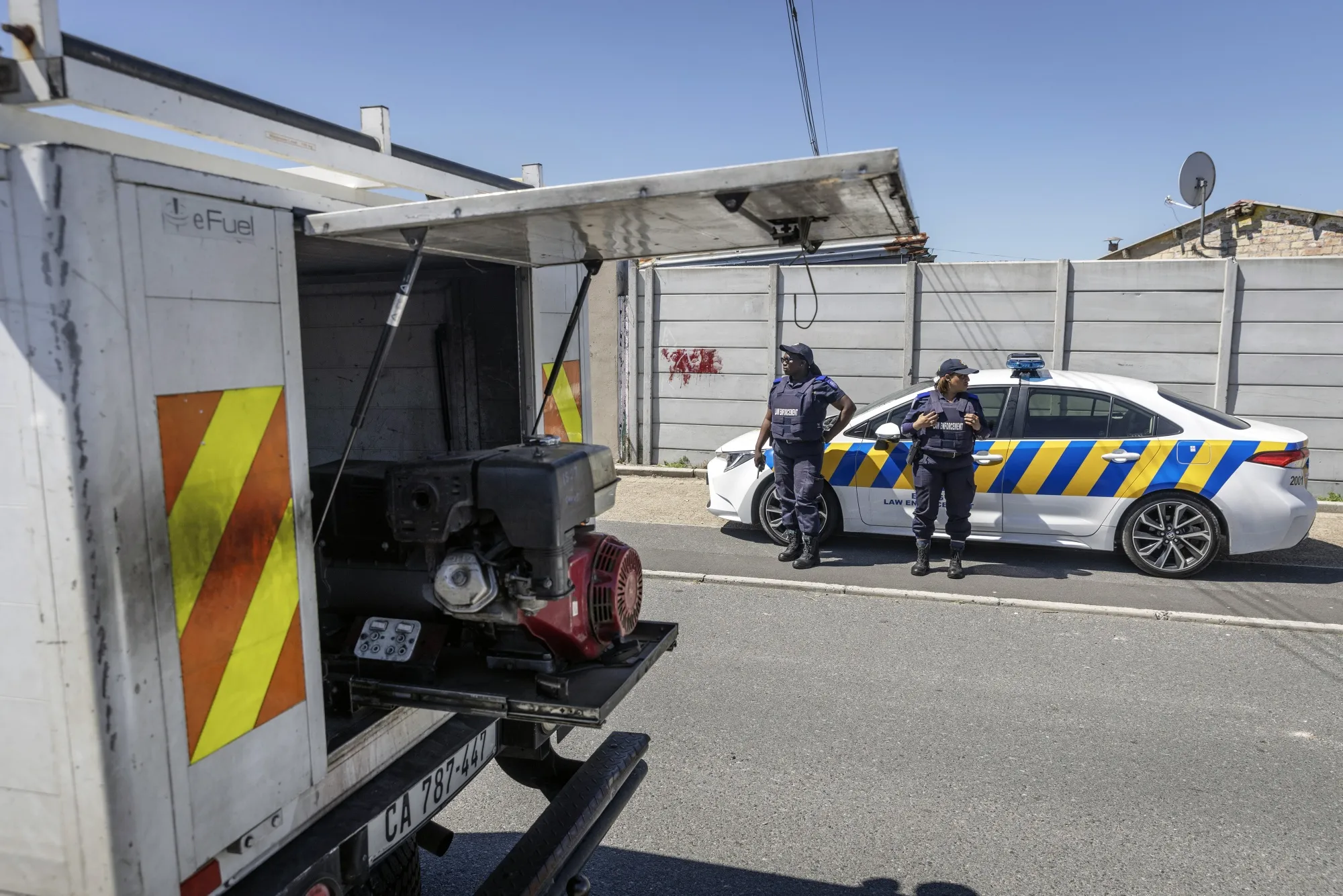 能源安全团队的武装成员,该单位协助南非警察服务保护电力基础设施,于2023年9月在开普敦的Manenberg镇巡逻。摄影师:Guillem Sartorio/Bloomberg打击犯罪的努力也取得了成效。尽管前总统雅各布·祖马的政府掠夺了公用事业的银行账户,但在发电站,小规模的破坏和盗窃现象却愈演愈烈。承包商被发现多次盗窃并转售部件,盗贼甚至用石头替换整车的煤炭。然而,在今年4月至8月之间,警方、国家检察官办公室、税务局和一个特别调查单位的联合努力使犯罪率比去年同期减少了28%。