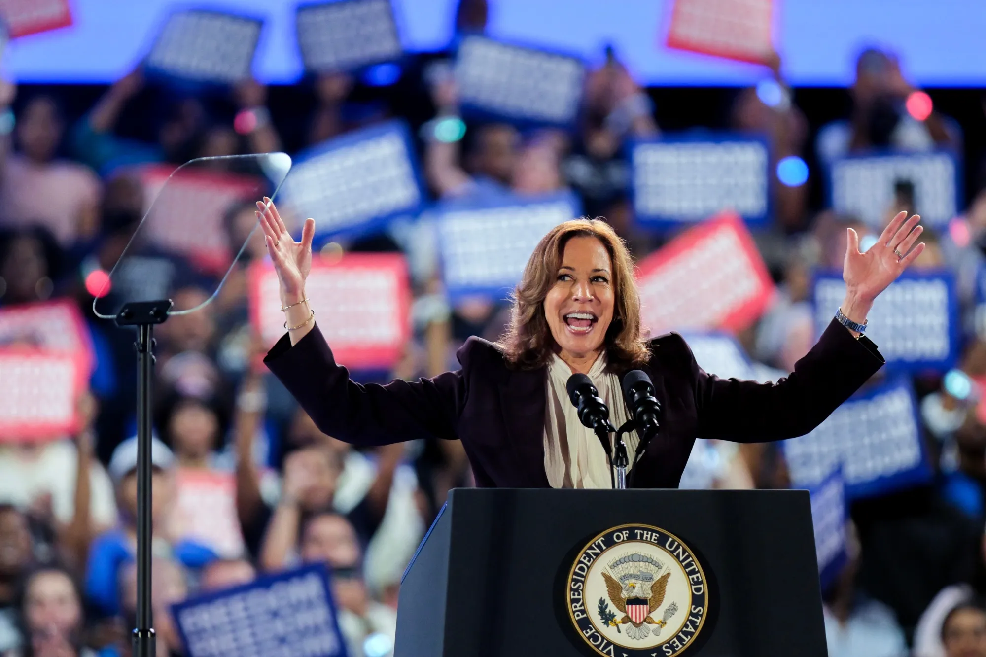 卡马拉·哈里斯于10月4日抵达密歇根州弗林特参加竞选活动。
