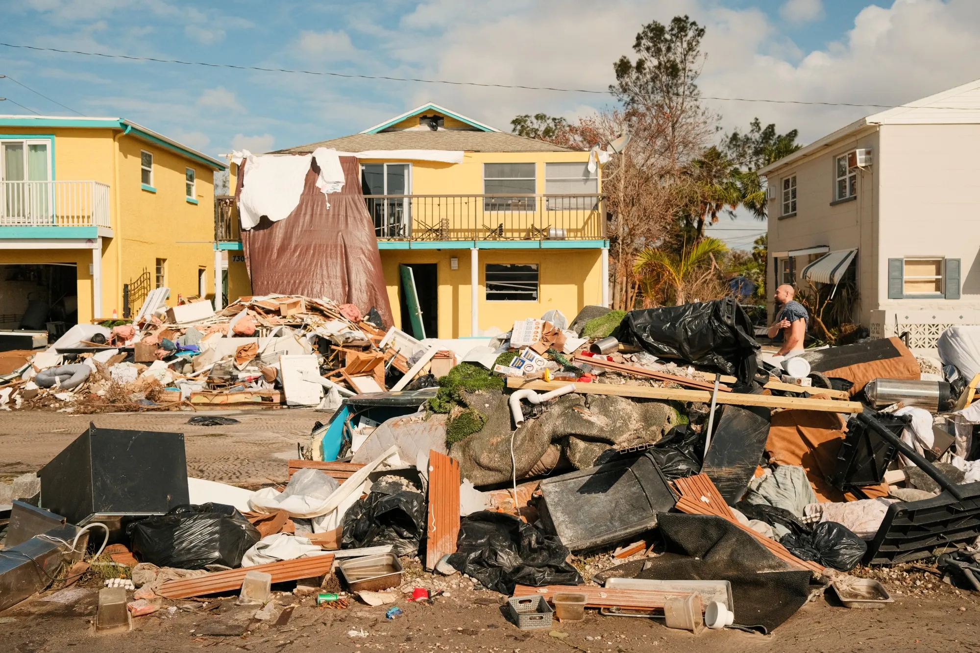 佛罗里达州圣彼得海滩飓风米尔顿后的残骸。