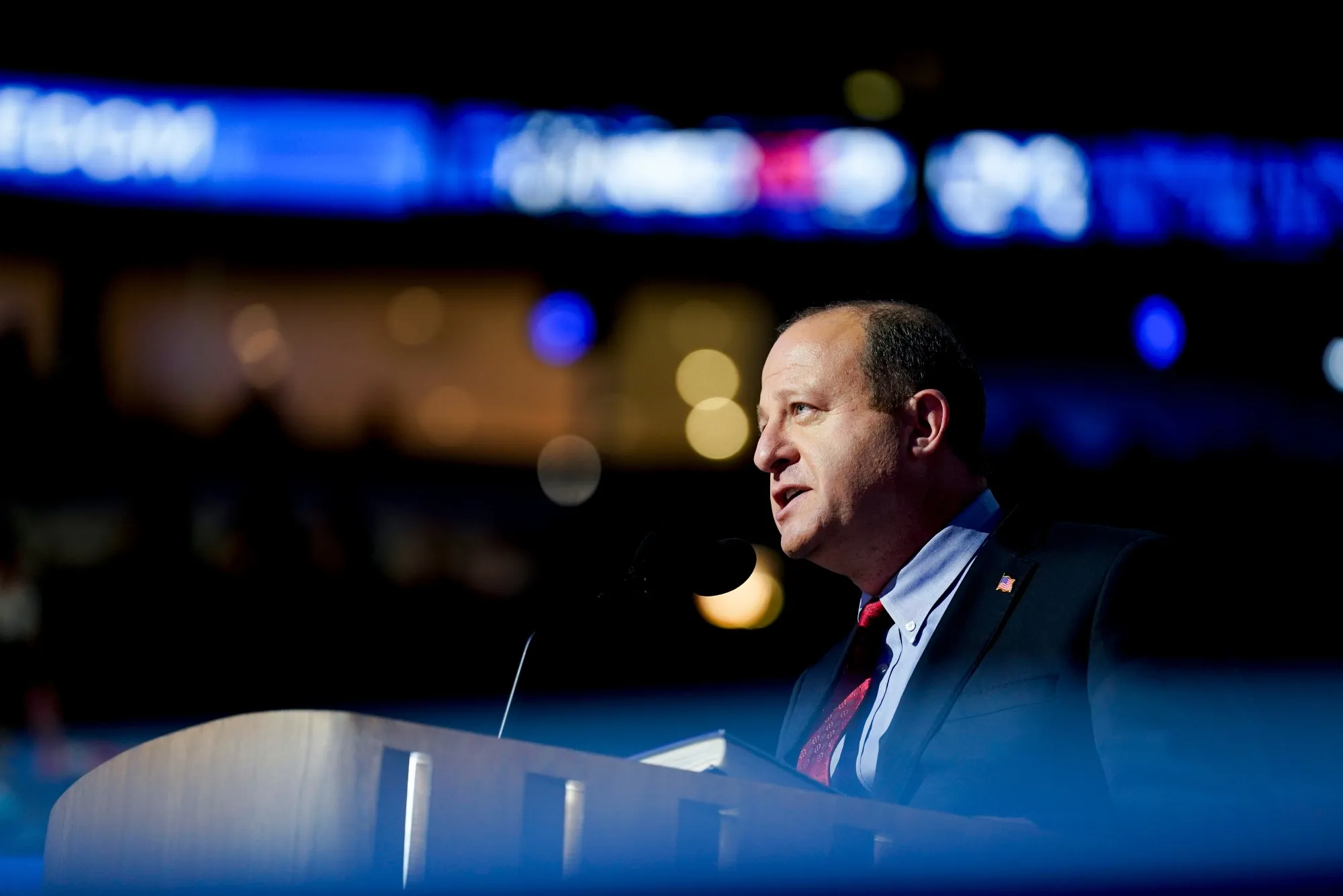 贾里德·波利斯在2024年8月21日于芝加哥举行的民主党全国大会上。摄影师:阿尔·德拉戈/彭博社科罗拉多州州长贾里德·波利斯对前总统唐纳德·特朗普如果重返办公室将实施大规模驱逐的能力表示怀疑,理由是联邦资源有限。