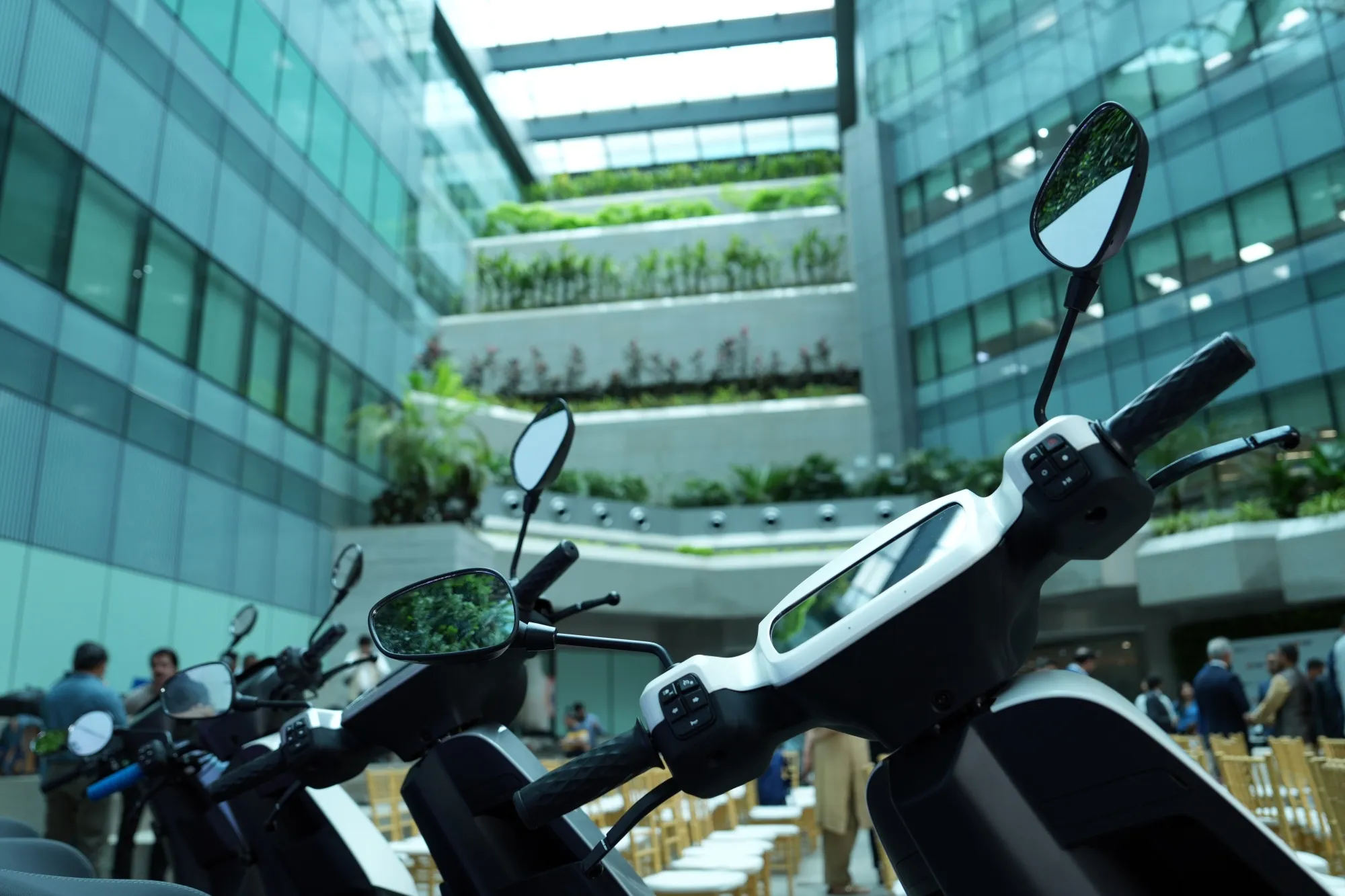 Ola Electric 电动摩托车在8月9日国家证券交易所的上市仪式上。