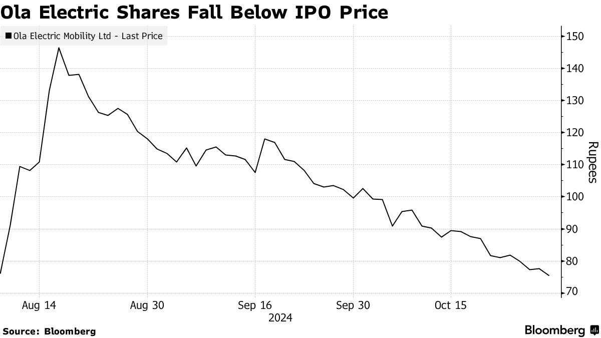印度的Ola Electric股价因财务担忧跌破首次公开募股价格 - 彭博社