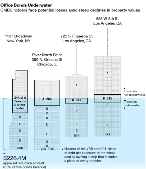顶级商业 抵押贷款支持证券的买家 首次遭受损失 自金融危机以来。这种痛苦在一种新型债券SASBs中最为严重,来自纽约到洛杉矶的办公室交易的债权人预计只能收回部分投资。