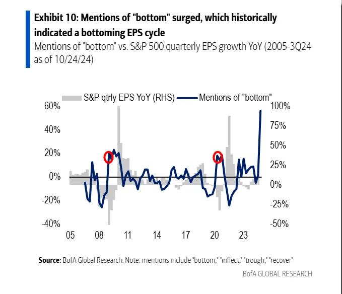 提到“底部”的结果在上周增长了56%,银行表示,与一年前相比。历史表明,这种提及的增加往往指向盈利的改善。