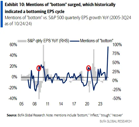 根据美国银行的数据,本季度财报中提到的“底部”在上周之前比去年增加了56%。过去,这些参考通常预示着利润的广泛改善,银行表示。