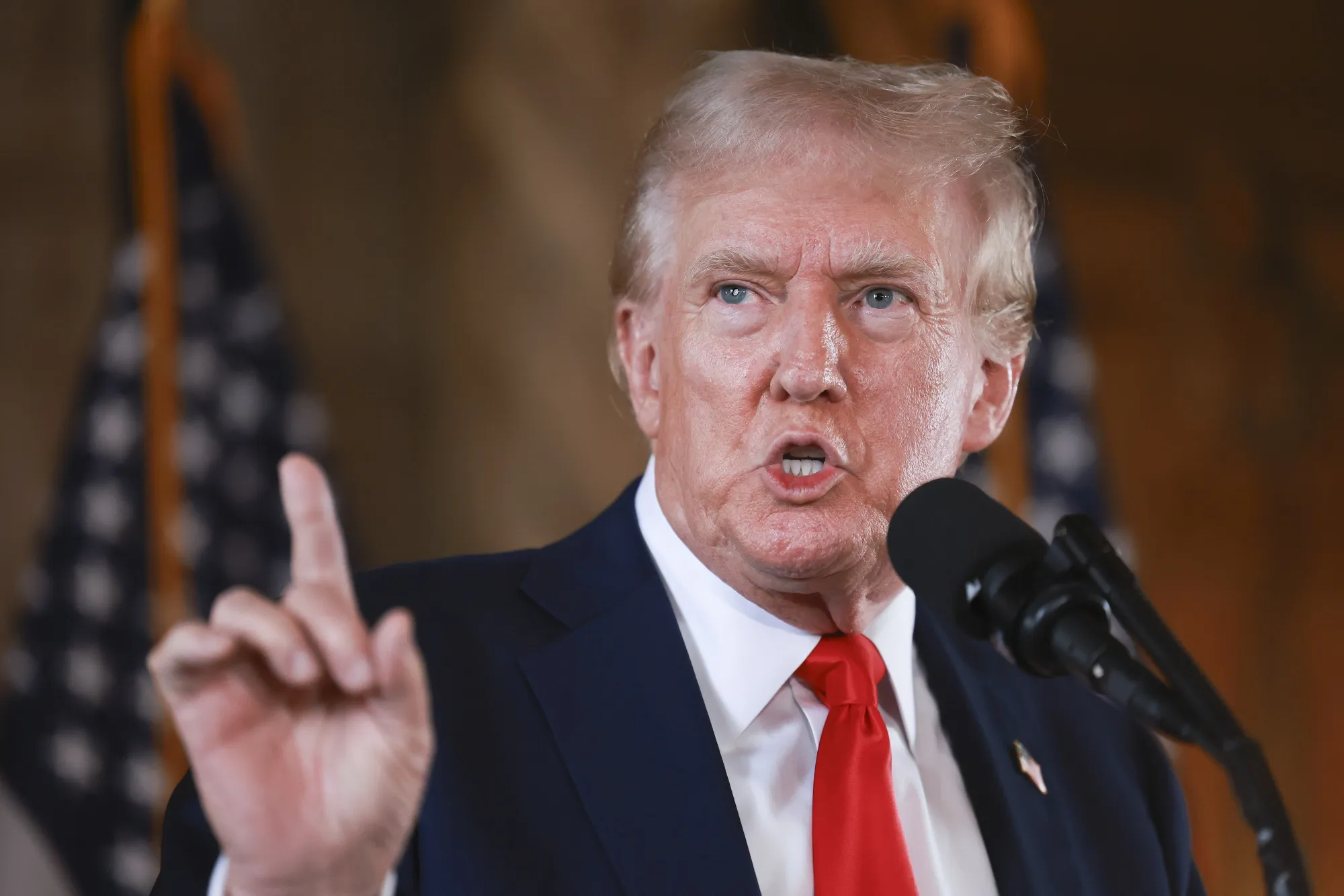 摄影师:乔·雷德尔/盖蒂图片社前总统唐纳德·特朗普在周二早上于他的马阿拉歌庄园接待记者,他希望在副总统卡马拉·哈里斯晚些时候在国家广场的重大演讲之前抢占先机。