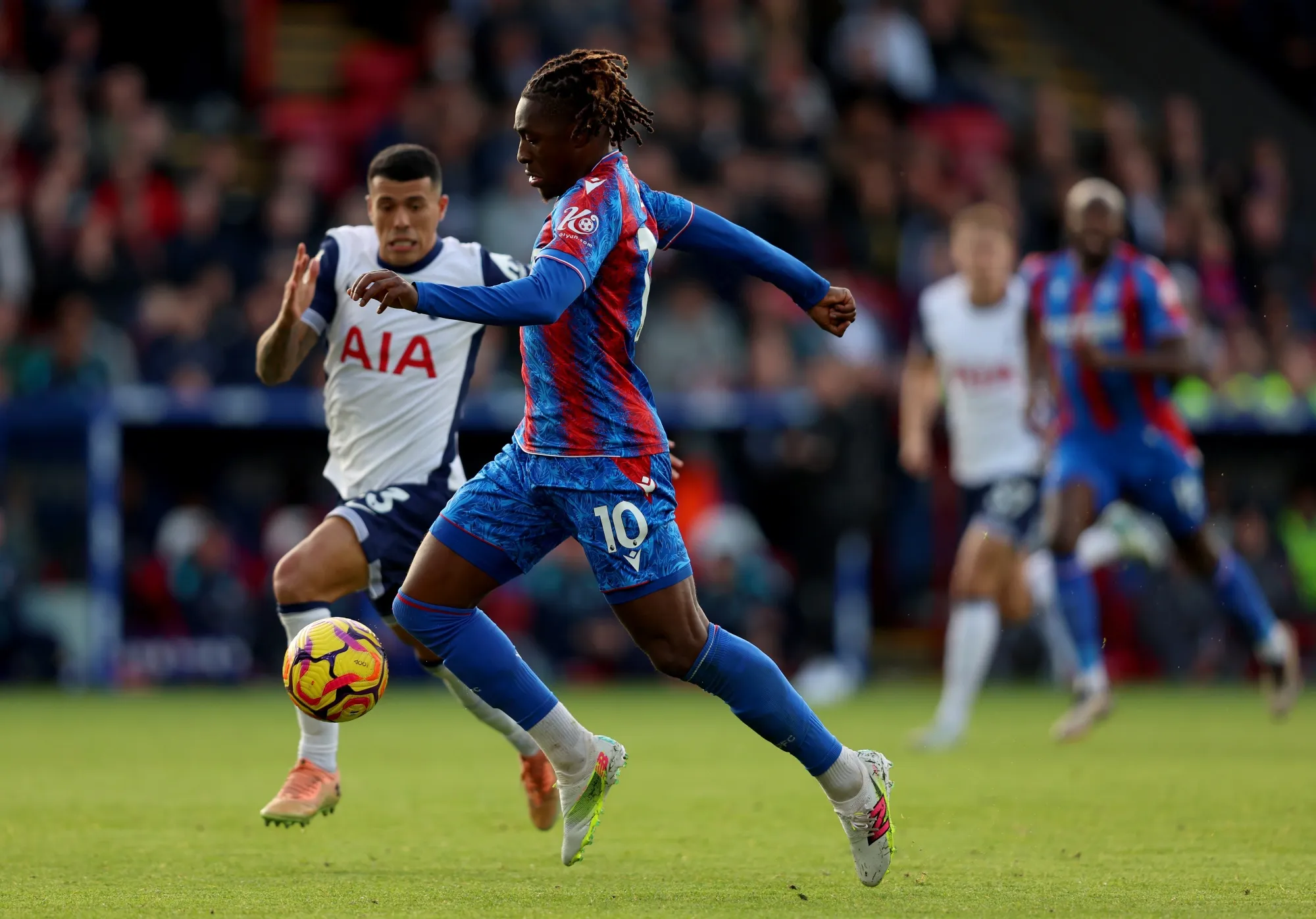 克rystal Palace的Eberechi Eze在2024年10月27日于英格兰伦敦进行的水晶宫足球俱乐部与托特纳姆热刺足球俱乐部的比赛中。
