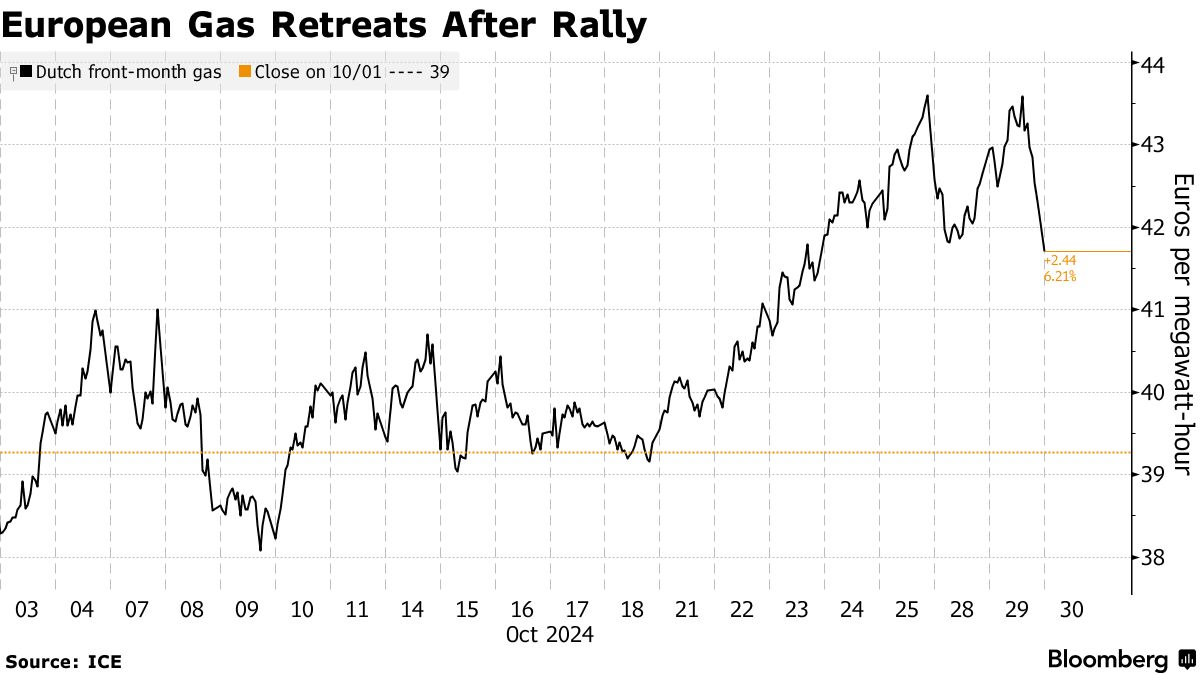 欧洲天然气价格下跌,因为高盛集团警告近期价格飙升至今年高点的下行风险。