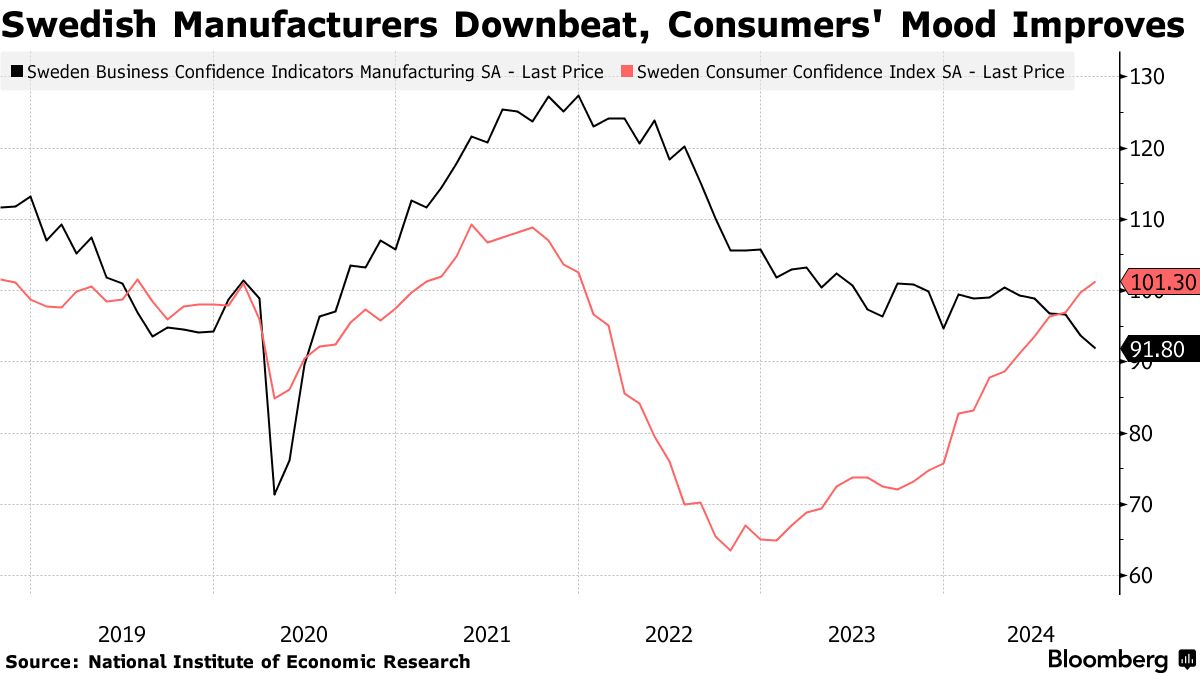 瑞典经济情绪的一个备受关注的指标显示,企业的前景恶化,抑制了复苏的希望,尽管消费者的情绪逐渐变得更加乐观。