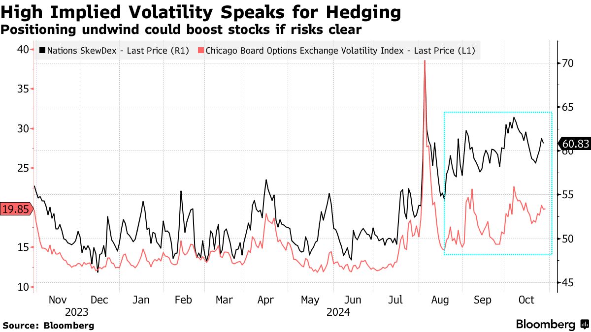 来源:彭博社随着美国总统竞选进入关键时刻,股票在一个以风险管理担忧为主导的环境中保持在接近历史高位,交易员因过去两个月的波动冲击和即将到来的风险事件而变得谨慎。