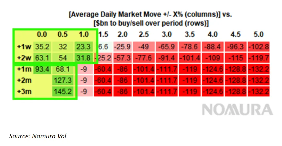 与此同时,随着8月和9月的大幅波动逐渐远去,较低的期权隐含波动率和实际波动水平的下降将促使波动率控制基金通过购买未来市场来重建敞口,野村的估计显示,如果市场保持相对平静,未来三个月的购买量可能高达1450亿美元。