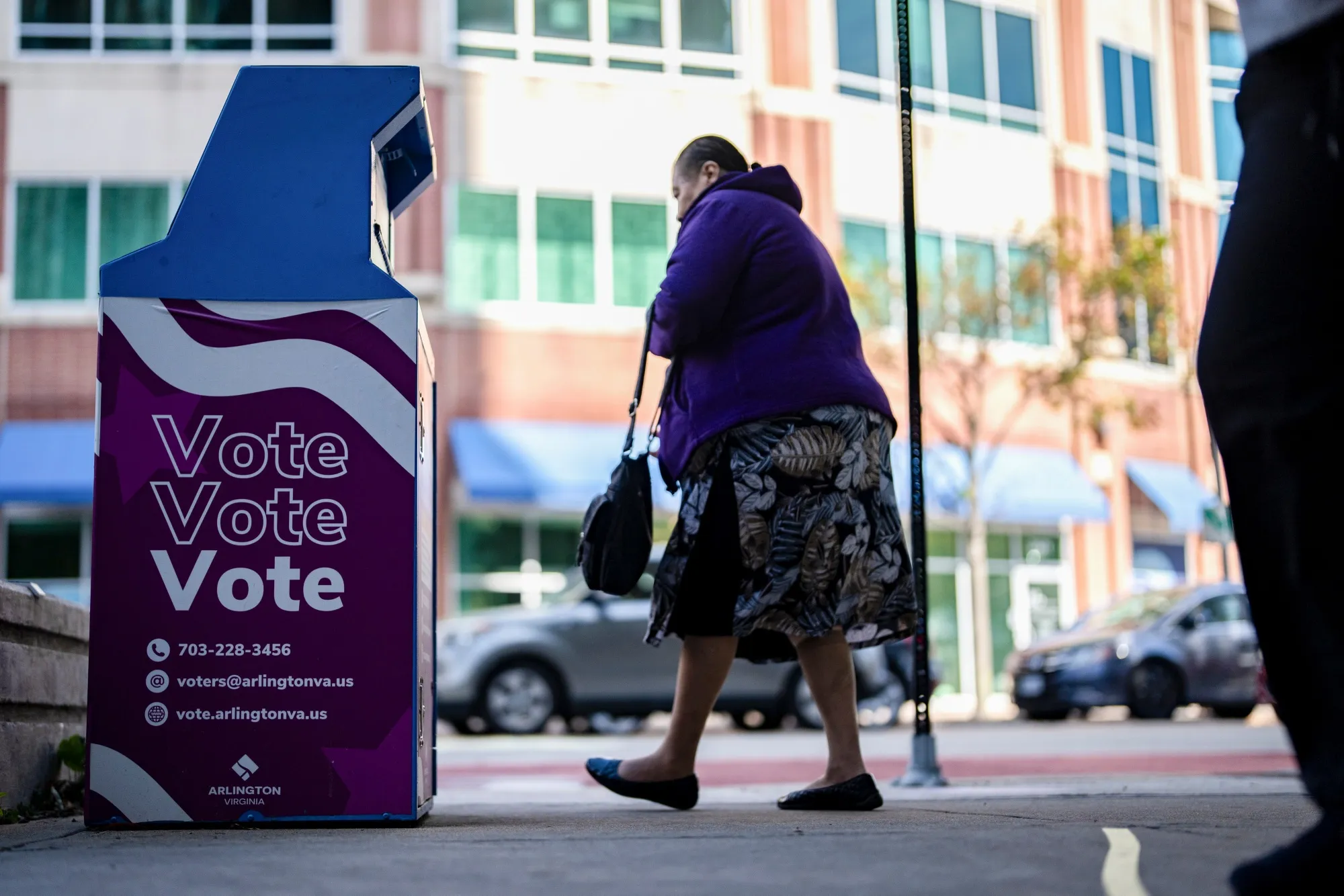 美国弗吉尼亚州阿灵顿的官方投票箱,拍摄于10月26日。
