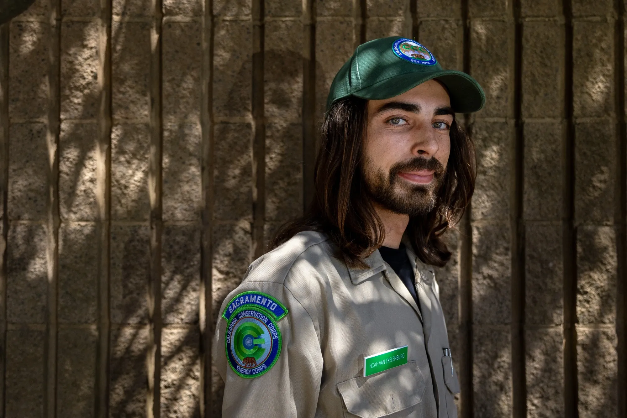 在圣华金县博览会场重新布线的四人组中,有25岁的诺亚·范·埃克伦堡,他在大学学习环境科学,然后加入了加州保护团。该项目是与更广泛的美国气候团体合作的州级倡议之一,旨在帮助年轻人,他们花一年时间从事从安装太阳能电池板到应对自然灾害的各种工作。
