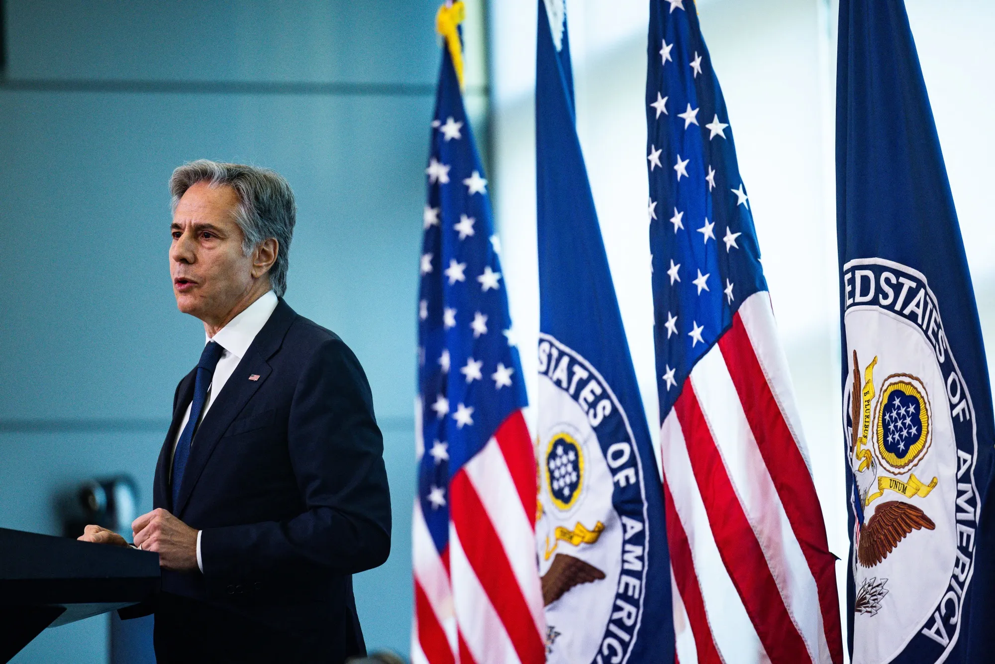 安东尼·布林肯在弗吉尼亚州阿灵顿的外交服务学院(FSI),时间是10月30日。摄影师:Tierney Cross/法新社通过Getty Images