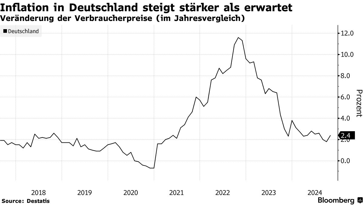 德国通胀大幅上升,增加了欧洲央行利率辩论的难度 - 彭博社