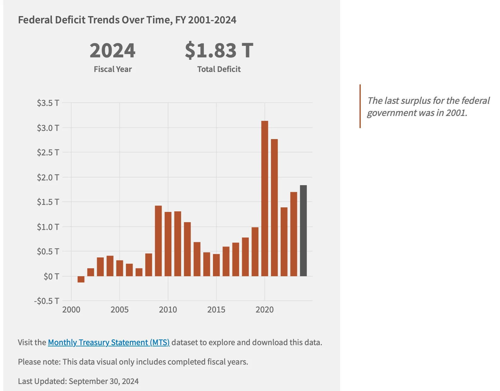 排除2020年和2021年疫情年份的巨大且必要的赤字,自2015年以来,赤字每年都在增加。更重要的是,两位主要总统候选人,卡马拉·哈里斯和唐纳德·特朗普,都有经济计划将继续这一趋势。哈里斯的计划不会导致如此大的赤字,因为她希望对富人和企业增加一些税收。特朗普的计划确实让他成为“债务之王。”这也是人们谈论飙升的收益率、飙升的比特币和飙升的黄金价格的一个重要原因,因为特朗普正在交易。