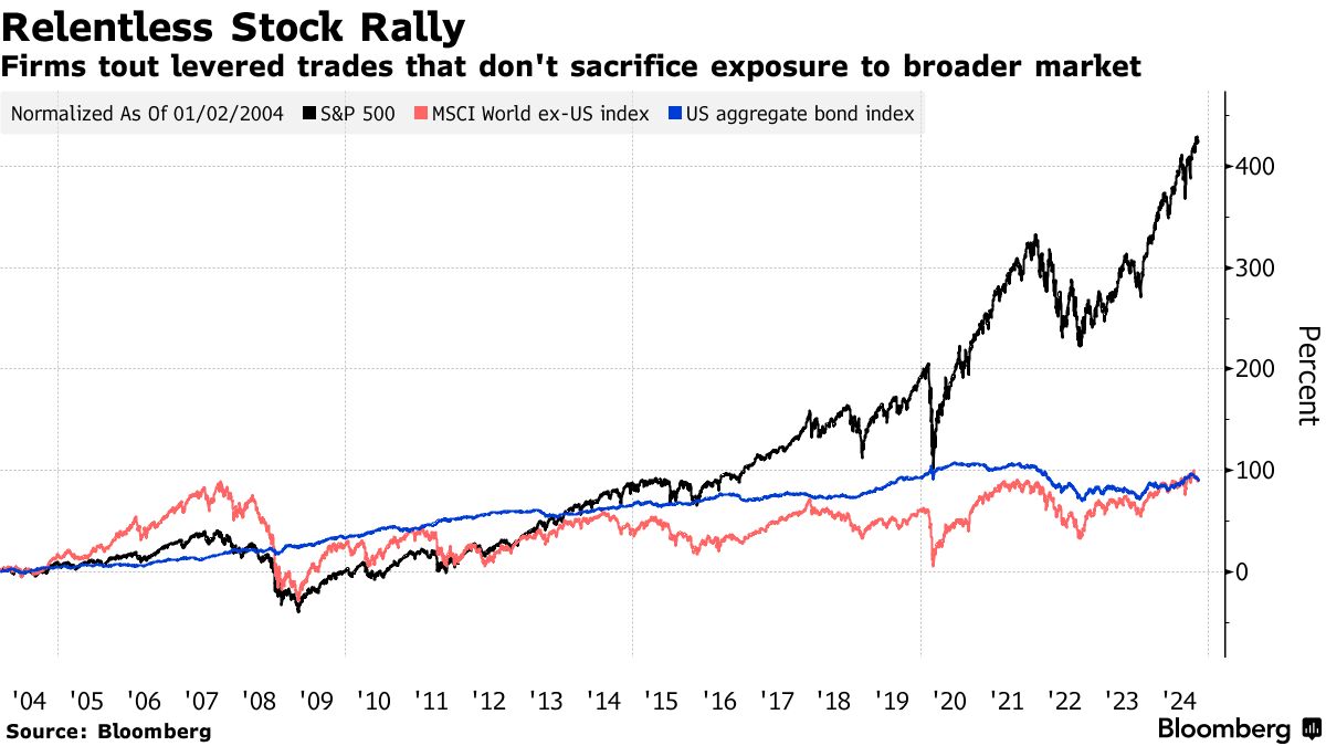 随着许多客户在与失控的股票牛市竞争中苦苦挣扎,这些系统化的资金管理者再次宣传使用借款来在传统股票和债券指数中榨取额外收益的优点。
