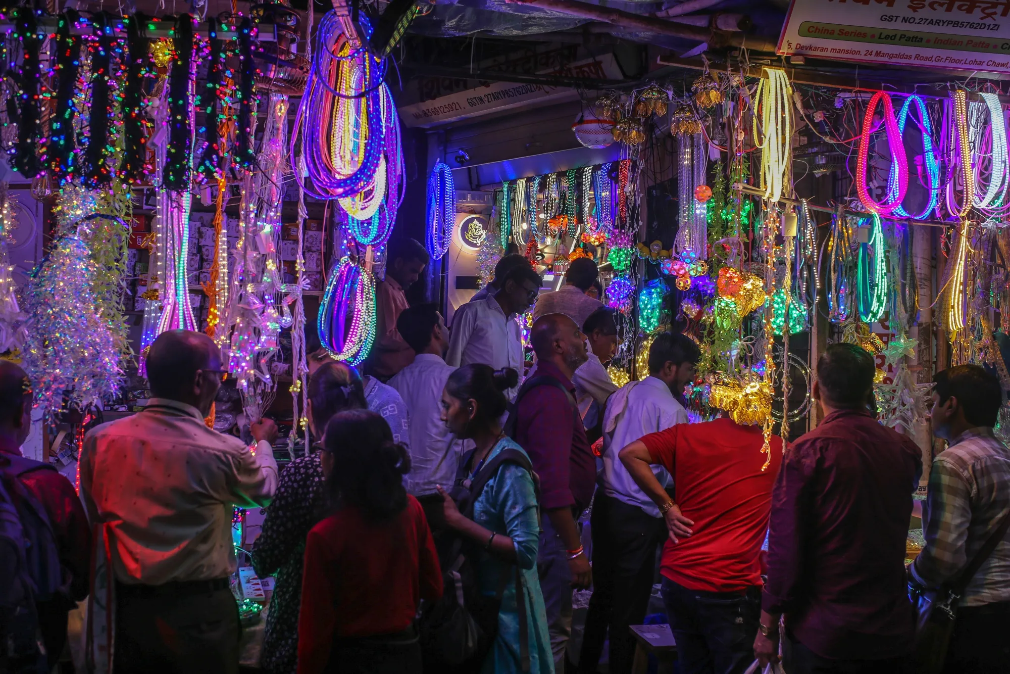 2024年10月29日,印度孟买的克劳福德市场,购物者在节日灯饰摊位前。Dhanteras节在排灯节前两天,是传统上被视为购买黄金和其他商品的最吉利日子。摄影师:Dhiraj Singh/Bloomberg印度的节日季节需求迄今为止显示出“混合的情况”,印度储备银行行长沙克蒂坎塔·达斯周一表示。
