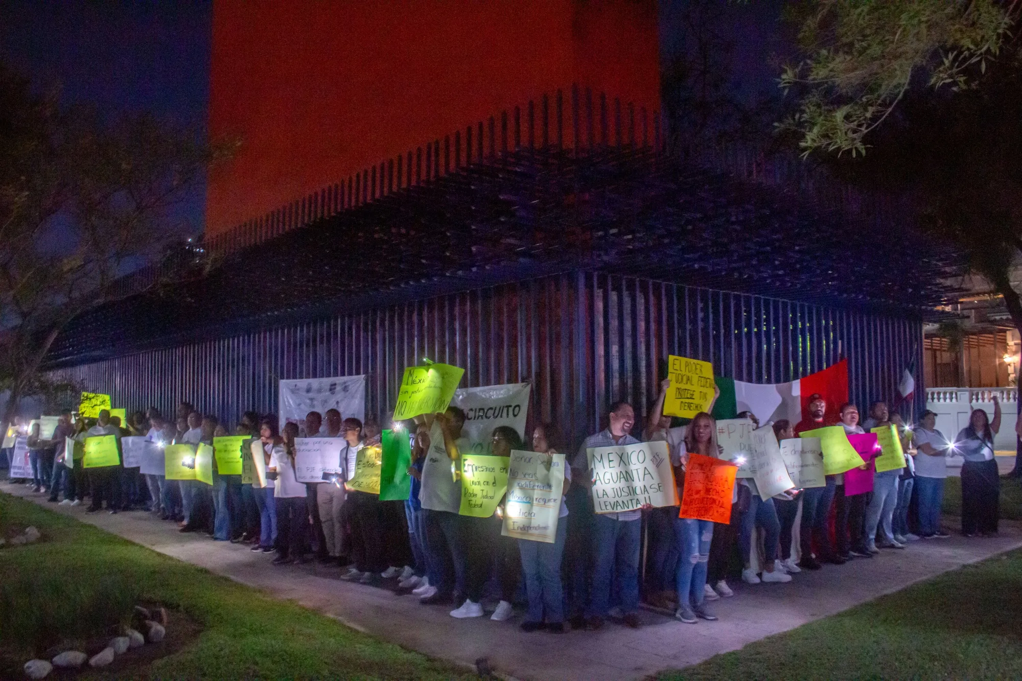 墨西哥蒙特雷的商业灯塔外,司法工作者于10月9日举行抗议。