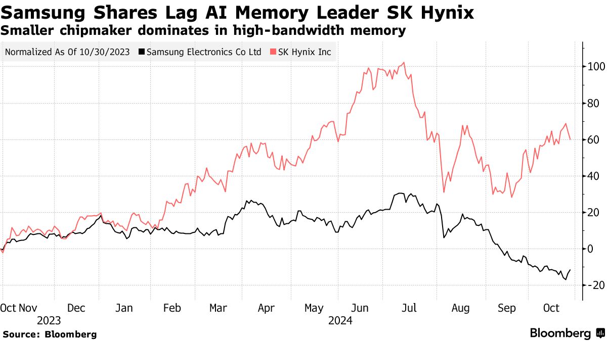 三星今年已失去约四分之一的市值,因为这家曾经主导的内存芯片制造商在获得Nvidia Corp.的最新芯片用于人工智能加速器的认证方面遇到困难。这为竞争对手SK海力士和美光科技提供了一个异常长的窗口,以在盈利丰厚的高带宽内存领域占据主导地位。SK海力士上周公布了创纪录的营业利润为7.03万亿韩元。