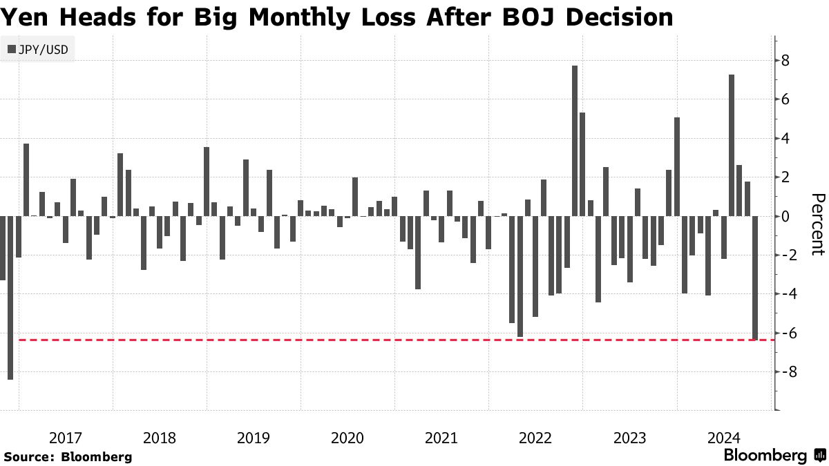策略师在日本银行会议之前表示,国内和美国政治的不确定性将可能阻止本月加息。美国收益率上升, 美联储的谨慎 对进一步降息,以及即将到来的美国总统选举都对日元施加了压力,日元正面临自2016年以来最糟糕的月份。