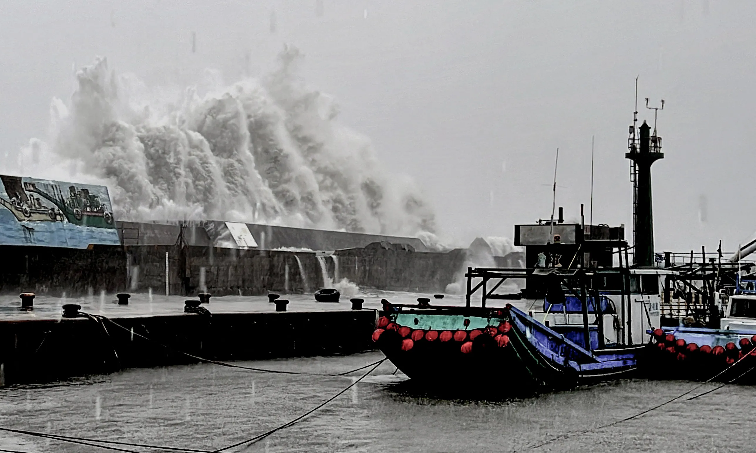 随着超级台风康瑞在10月31日逼近台东,海浪冲击着海堤。来源:中央社/法新社/盖蒂图片社台湾已暂停其2.5万亿美元的股市交易,居民们准备迎接超级台风康瑞的直接袭击,这是今年晚些时候袭击该岛的最大风暴之一。