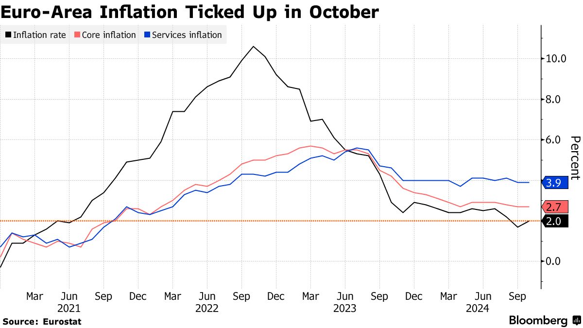 与此同时,在欧洲,工资上涨正在推动服务行业的通胀。该经济领域的价格增长在十月份保持不变,为3.9%。