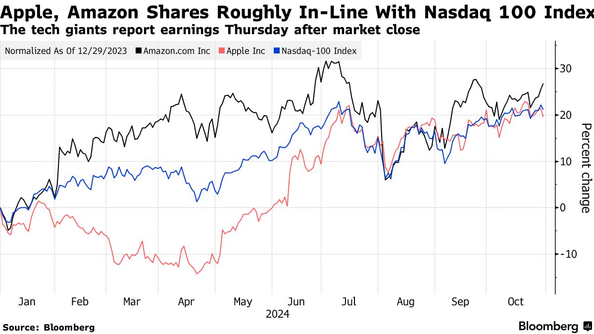 苹果(AAPL)、亚马逊(AMZN)在大型科技公司财报的混合周中成为焦点 - 彭博社
