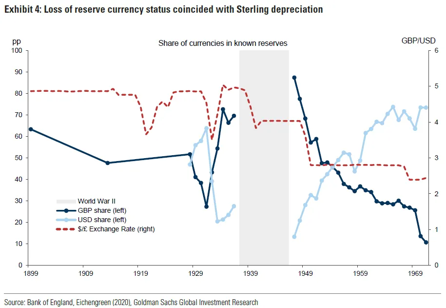 但历史表明,世界的基础货币可能会失去其地位,就像20世纪英国的英镑一样。现在,美国经济在全球产出中的份额远小于二战后其主导地位开始时的水平。