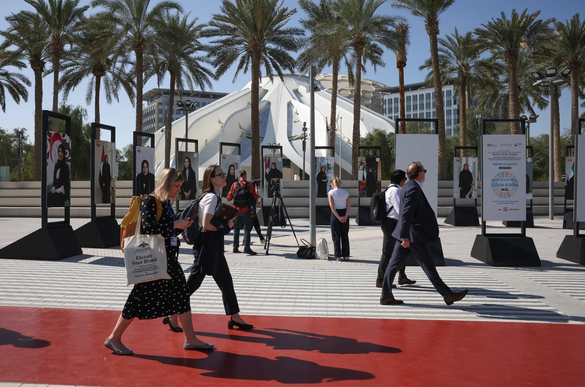 与会者在COP28的绿色区域内走动。摄影师:安妮·萨卡布/彭博社最终,行动的步伐和规模将会放缓,因为“美国在推动雄心方面的角色”,预测说,乔纳森·珀辛,资深美国气候谈判代表,现在是威廉和弗洛拉·休利特基金会的环境项目主任。