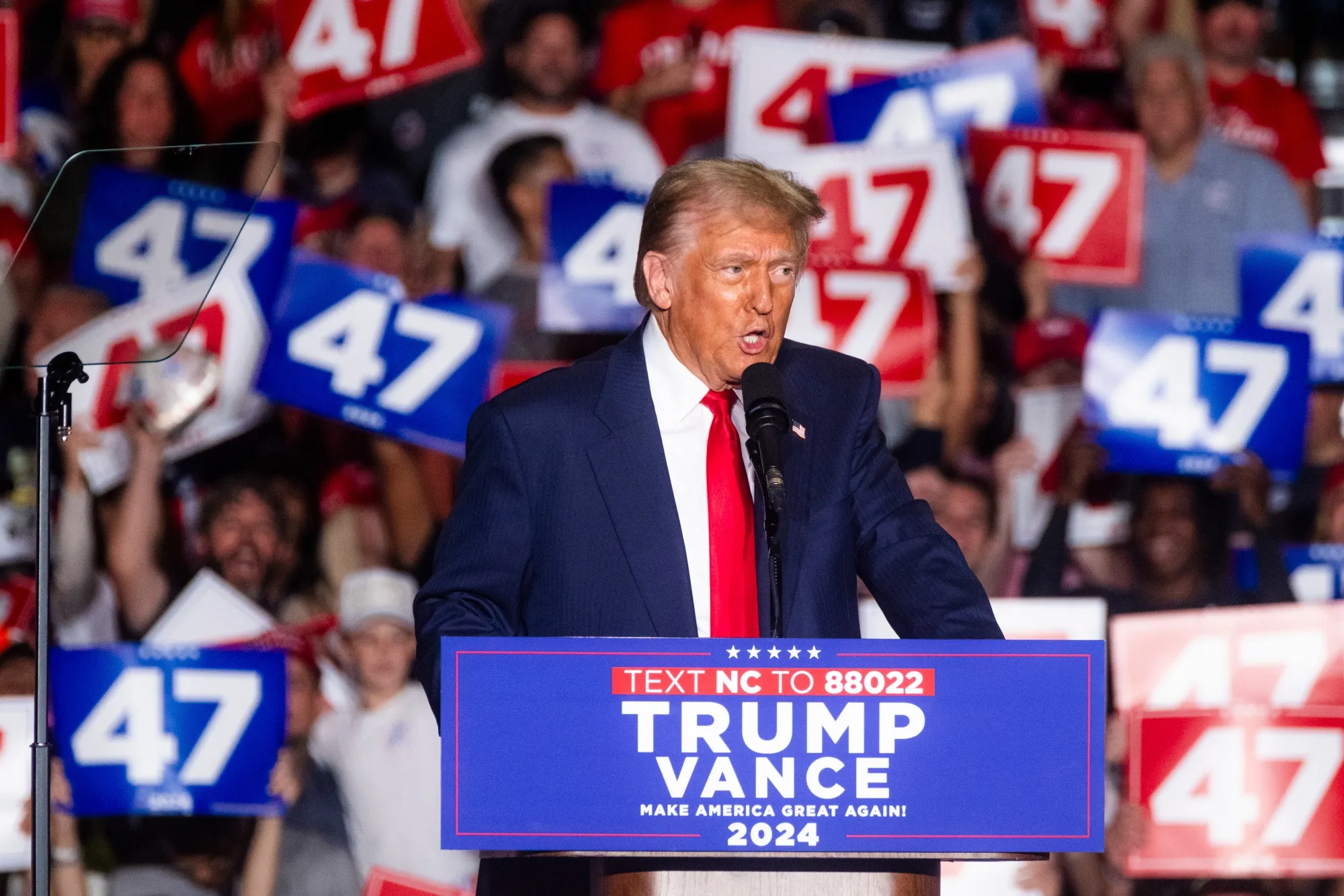 前美国总统唐纳德·特朗普在2024年10月22日北卡罗来纳州格林斯伯勒的一次竞选活动中。