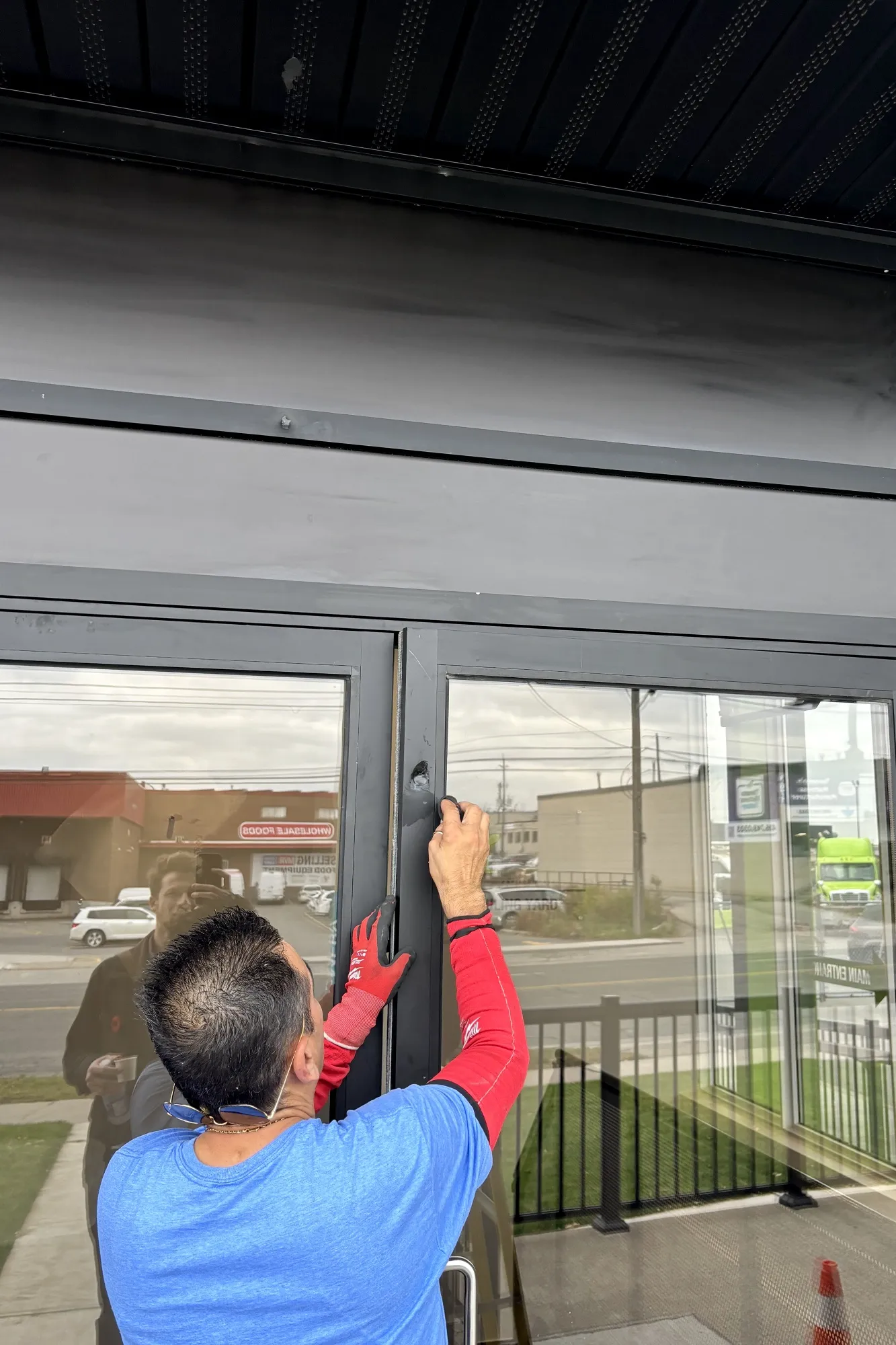 当彭博新闻的记者周四下午访问多伦多3668 Weston Road的GFL环境办公室时,前门周围似乎有子弹孔。工人们开始修复损坏。
