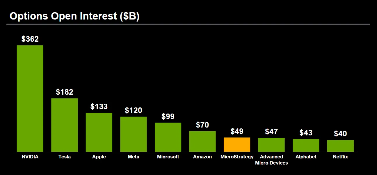 波动性似乎对公司有效,至少到目前为止。MicroStrategy是截至目前在罗素1000指数中表现第四好的股票,涨幅达到287%,超过了Cava Group等高飞股票,甚至包括Nvidia Corp。正如Saylor所指出的,它也是期权交易数量最多的股票之一。期权为股票带来更多流动性的一种方式是,当交易商最终购买股票以对冲其在衍生合约中的头寸时。