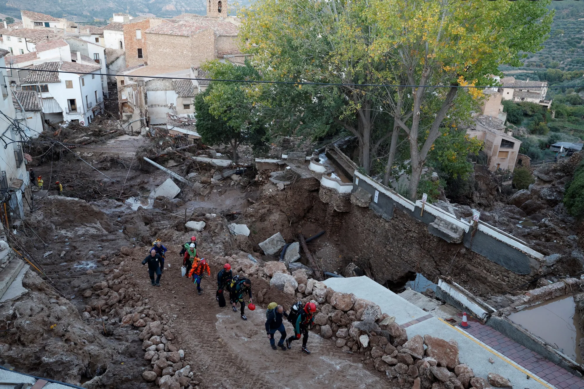10月30日,瓦伦西亚西南部的莱图尔,紧急工作人员检查洪水造成的损害。摄影师:奥斯卡·德尔·波佐/法新社/盖蒂图片社“目前的优先事项是寻找受害者、失踪人员,以安抚他们亲属可能正在经历的焦虑和痛苦,”总理佩德罗·桑切斯在周四访问瓦伦西亚时表示。地区政府已宣布将拨出至少2.5亿欧元(2.72亿美元)用于恢复工作。