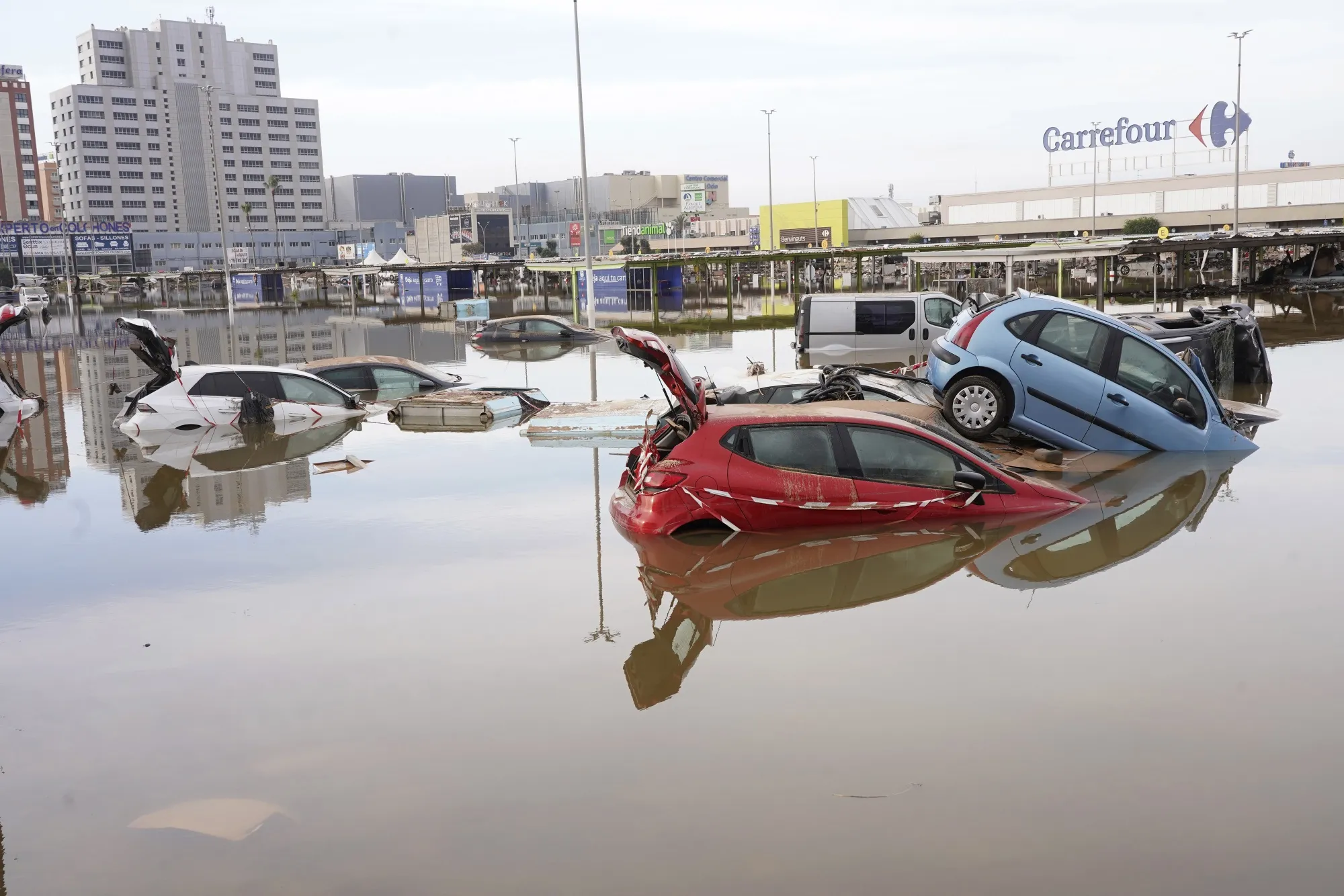 瓦伦西亚的洪水中的车辆,11月1日。摄影师:阿尔贝托·赛兹/AP照片创纪录的降雨引发了西班牙六十多年来最大的自然灾害,瓦伦西亚的河流溢出,淹没了建筑物,摧毁了道路和桥梁。这使得这是自2021年西德阿尔河地区被淹没以来,欧洲遭遇的最致命洪水,造成约184人遇难。
