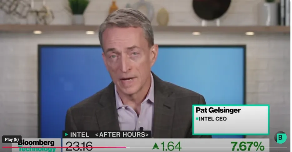 英特尔首席执行官帕特·基尔辛格参加了彭博科技的特别版节目,讨论了公司的季度业绩和他对这家芯片制造商的扭转努力。](https://www.youtube.com/watch?v=DpJqRHFYUqk)### 充电完毕