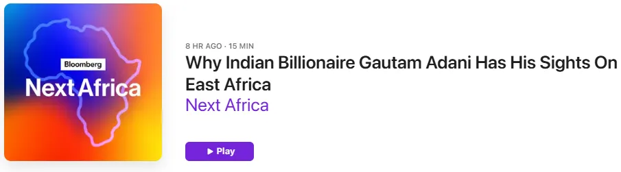 来自孟买的彭博社高级记者P R Sanjai和在内罗毕的海伦·尼扬布拉与詹妮弗·扎巴萨贾一起解释了为什么东非对印度最富有的人之一高塔姆·阿达尼来说是如此重要的投资地区。埃马纽埃尔·马克龙希望缓和与摩洛哥的紧张关系,在对这个前保护国的访问中签署了可能价值高达100亿欧元的协议。在对摩洛哥立法者的激情演讲中,这位法国总统 赞扬了两国关系,指出“摩洛哥将始终扮演独特的角色,作为通往非洲的门户。”此次访问是他自2017年当选以来第三次前往这个北非王国。