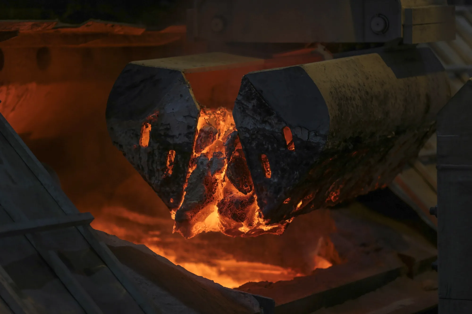 印度Vedanta Ltd.铝冶炼厂的减量单元中的一把铲子。制造商正受到原材料铝土矿供应短缺的压力。