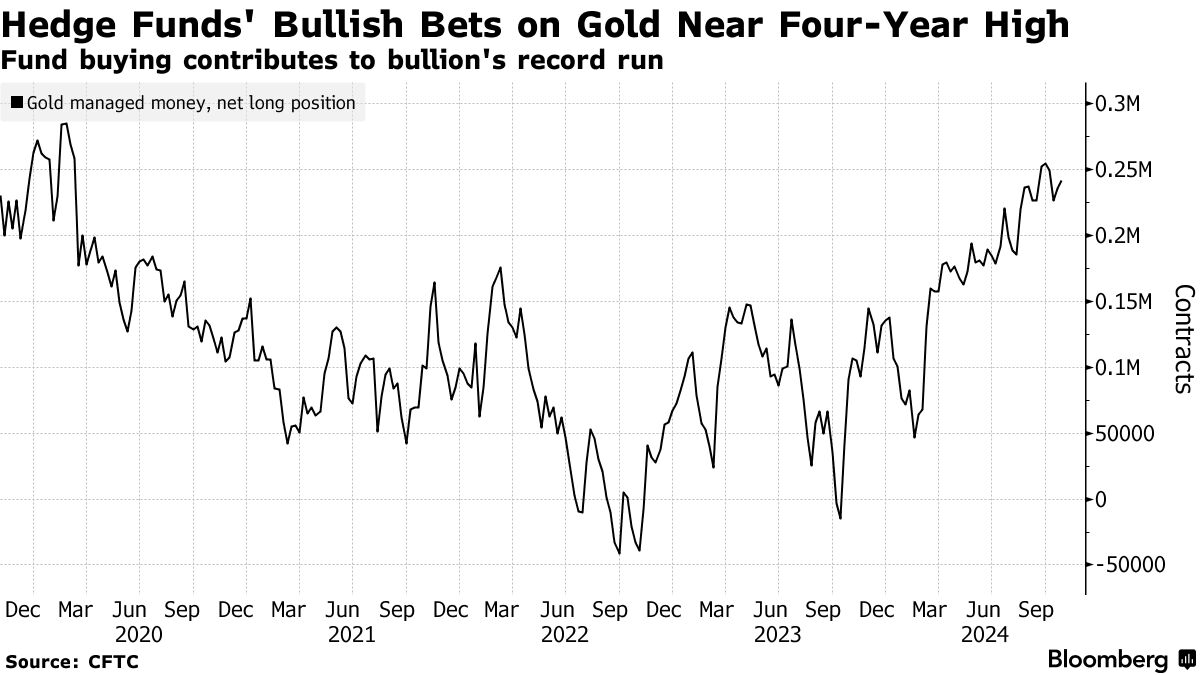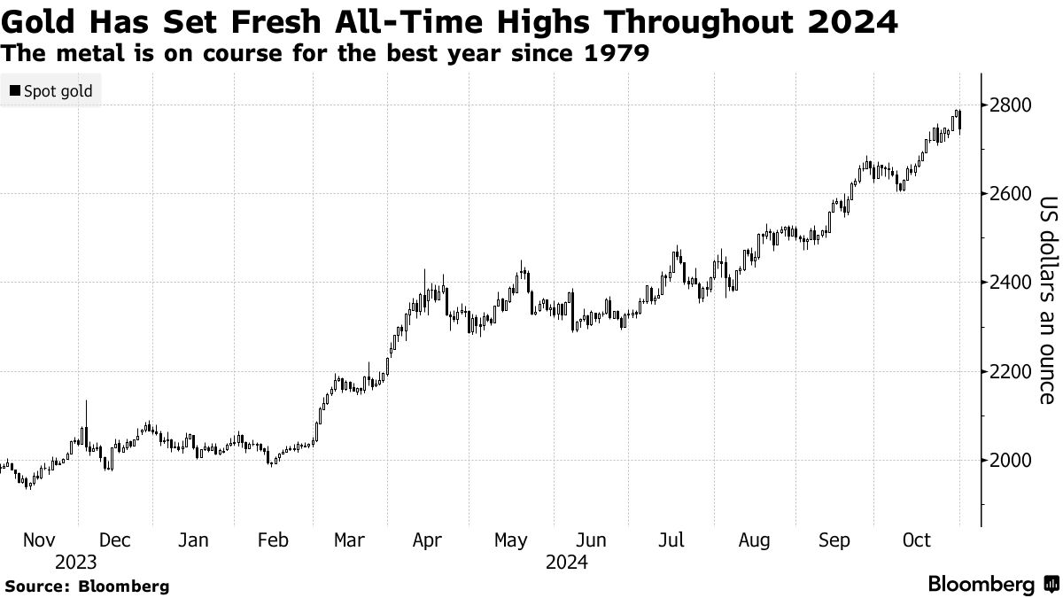 黄金本周飙升至新纪录,价格有望创下自1979年以来的最佳年度表现。中央银行和中国买家最初引领了这一趋势,但随着投资者寻求在下周投票前保护自己免受市场动荡的影响,需求已扩大。无论谁胜出,这一涨势可能会继续。