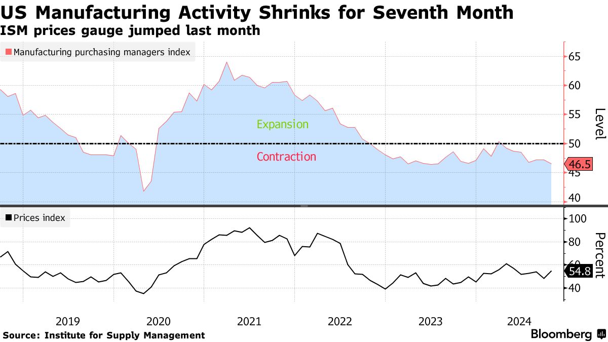 美国制造业活动在十月份连续第七个月收缩,降至自2023年七月以来的最低水平,受到生产下降和库存缩减的拖累。