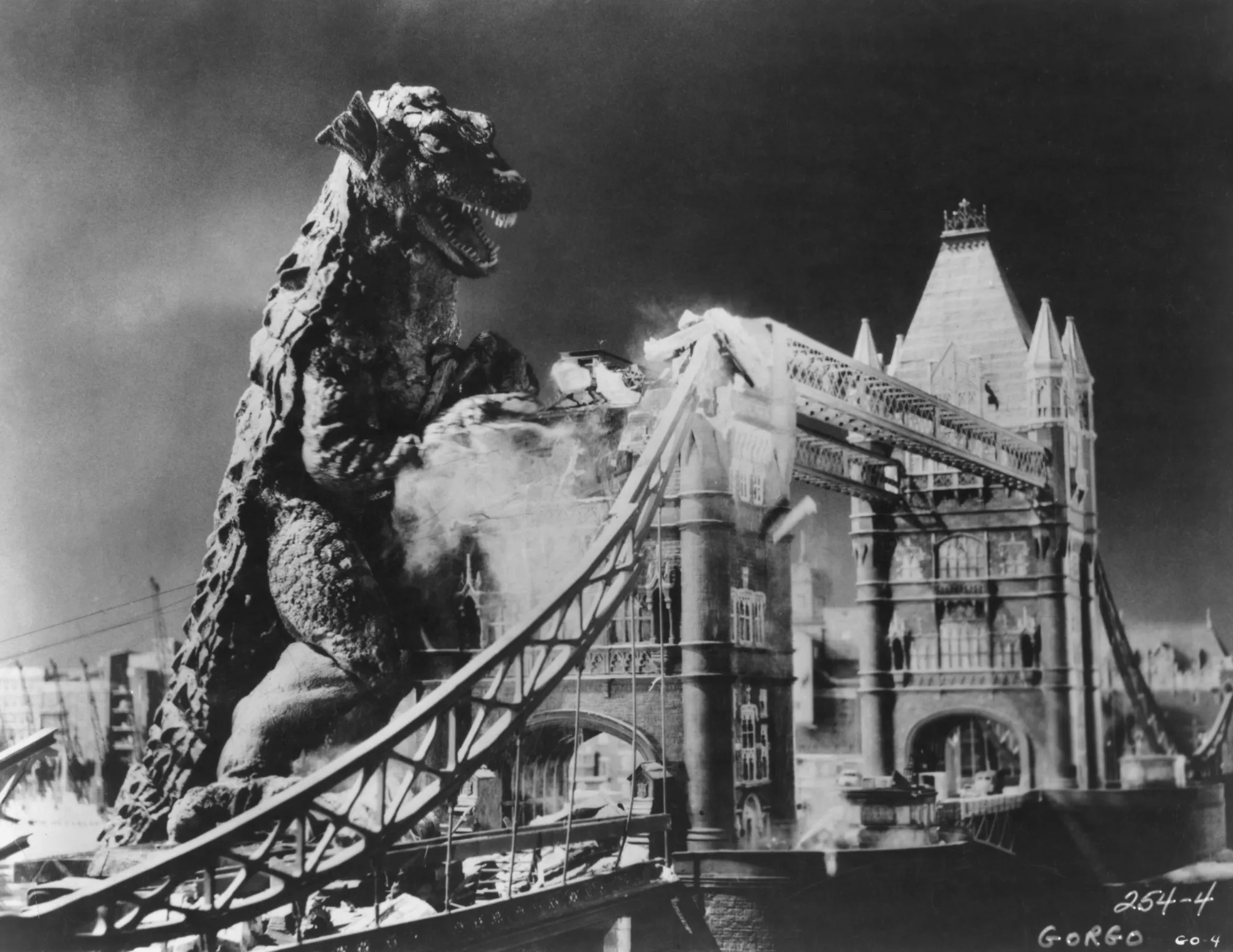 周日是哥斯拉的70岁生日。但你知道英国也有自己的“套装怪兽”在城市中横行吗?那就是戈尔戈。我记得这个海怪是从童年开始的——更多是来自1961年电影的漫画版本,而不是同名电影。这是一个感人的故事:幼小的戈尔戈在听起来很像爱尔兰西海岸的阿兰群岛被发现。他被带到伦敦,在泰晤士河南岸的巴特西进行公开展示。然而,故事中还有一个更大的怪物:戈尔戈的妈妈。她来救他免于成为马戏团表演。温馨,是的,但她在这个过程中摧毁了伦敦。