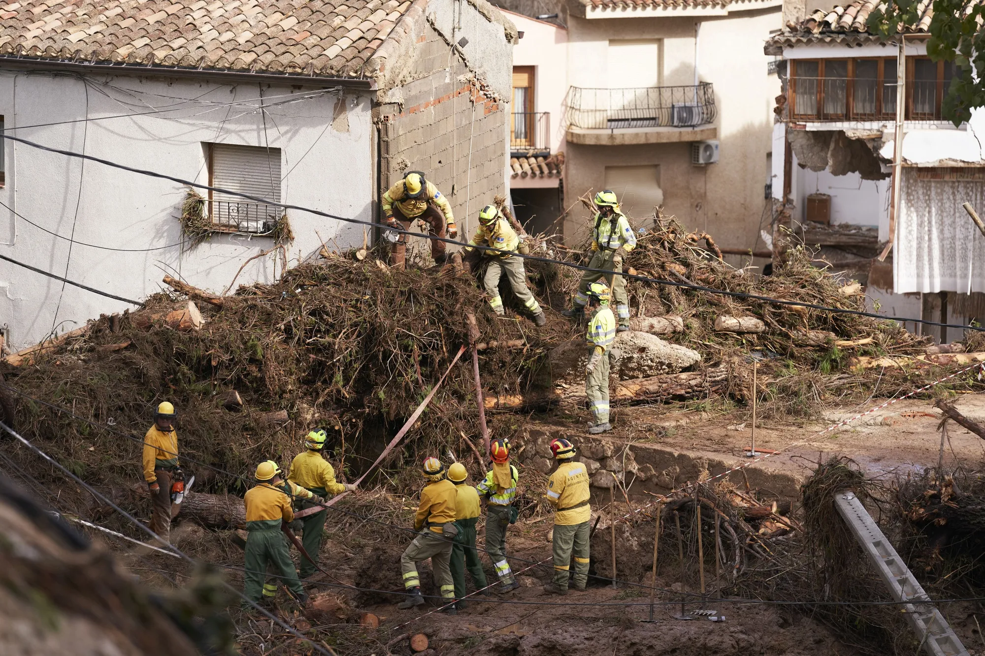 人们在佩波尔塔的废墟堆中穿过一座桥。摄影师:大卫·拉莫斯/盖蒂图片社与此同时,许多人仍被困在家中,死亡人数持续上升,救援工作仍在进行中。负责特殊紧急军事单位的费尔南多·卡里略将军表示,最多有2,000名陆军、海军和皇家卫队成员被部署到瓦伦西亚。