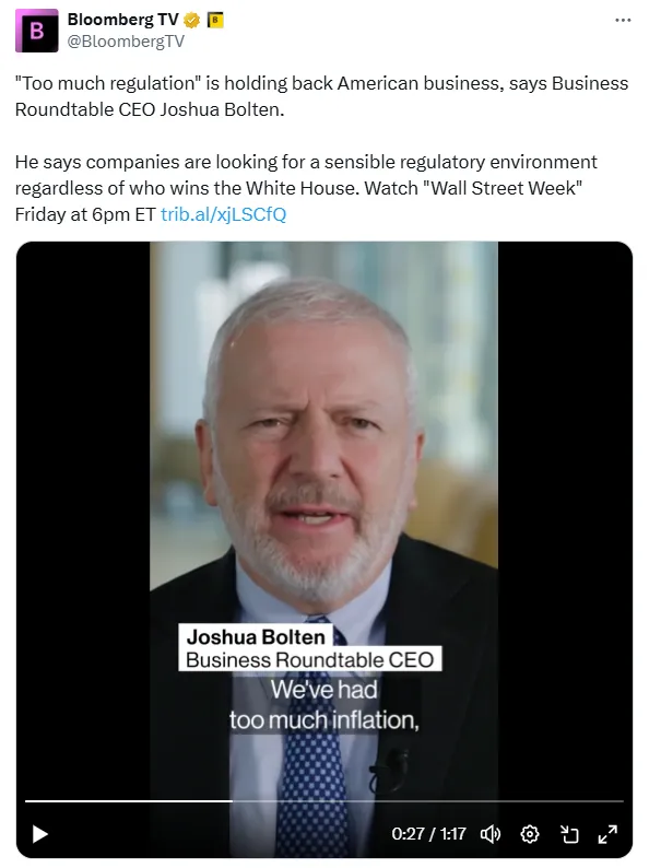根据商业圆桌会议首席执行官乔什·博尔滕的说法,美国商业领袖对选举后发生的事情有自己的看法。