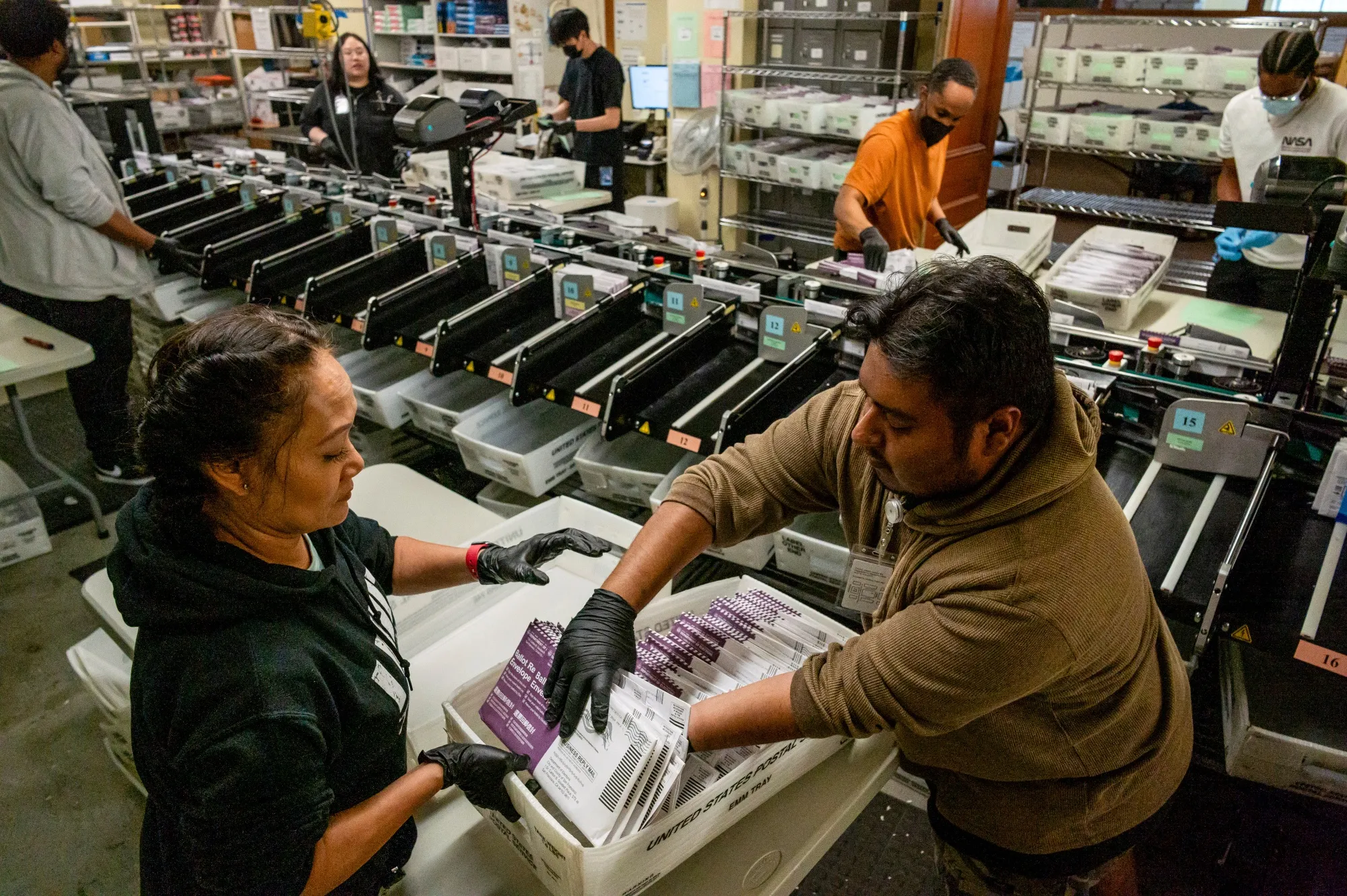 选举工作人员在旧金山的投票地点整理选票。摄影师:David Paul Morris/Bloomberg根据盖洛普的调查,70%的共和党人表示他们对当地投票地点的投票完整性有信心。研究人员表示,共和党选民对自己选举办公室的信任程度表明,对全国结果的相对缺乏信心至少部分是受到在线阴谋论的影响。